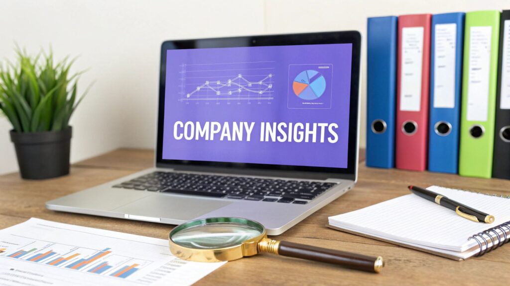 Digging up information on a company is more than just a fact-finding mission; it’s about assembling a complete puzzle to make smarter, more confident business decisions. Whether you're sizing up a competitor, vetting a potential partner, or evaluating a job offer, the quality of your research can make or break your next move. For instance, a sales professional might discover a target company just secured a $10 million Series B funding round—a clear signal they have capital to spend and are likely expanding.